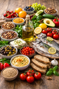 Le principe du régime méditerranéen Le régime méditerranéen repose sur : beaucoup de légumes et fruits, céréales complètes, légumineuses et noix, poissons et produits de la mer à raison