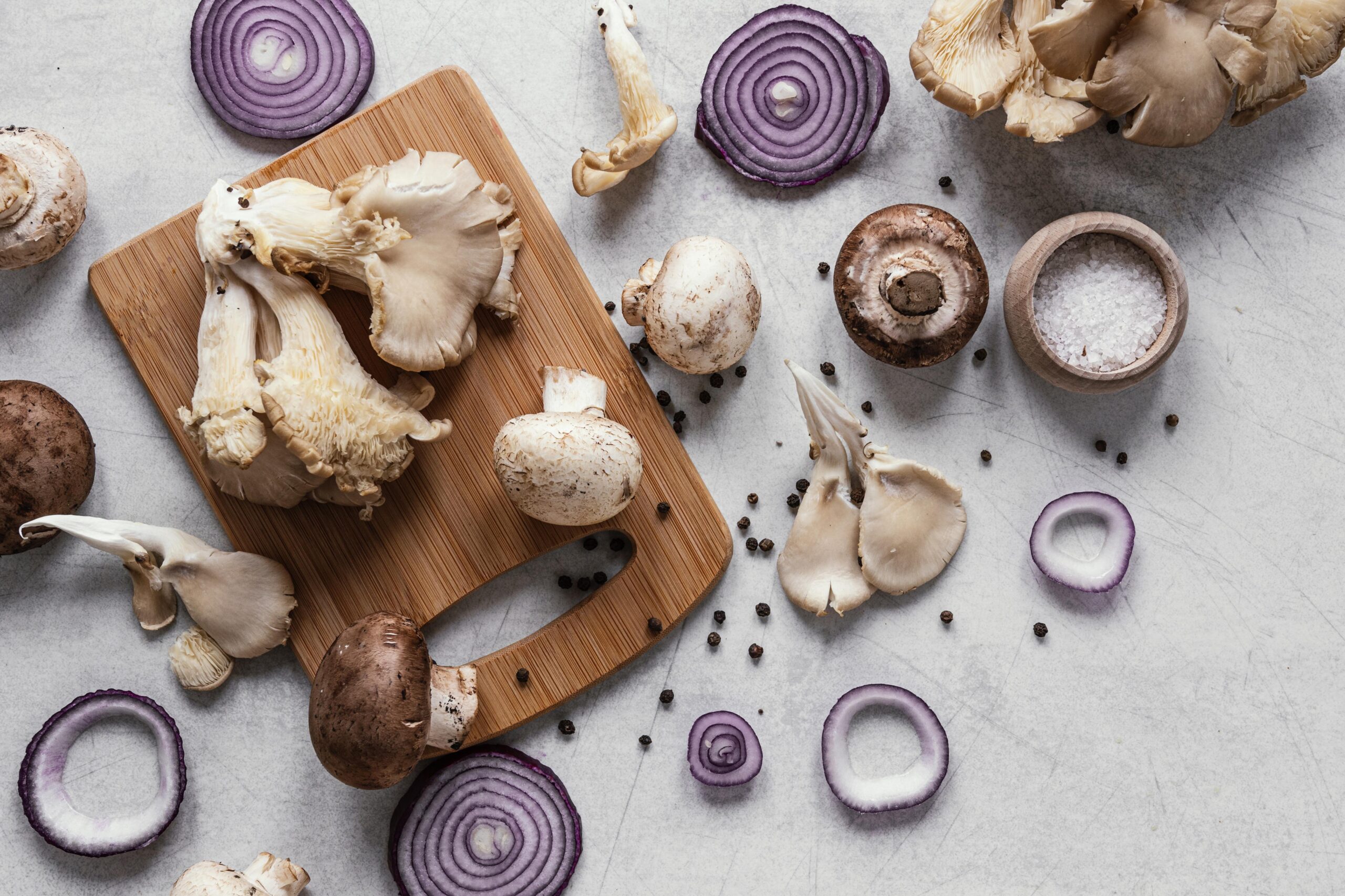 Pelez et laver les champignons et l’oignon puis les râpez finement à l’aide de la mandoline compacte au-dessus de la mâche.