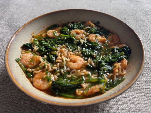 Pour 2 personnes – Préparation 5 mn – Cuisson 10 mn Ingrédients : 200 g de crevettes cuites décortiquées 2 cuillères à soupe de pâte de curry 200 g de nouilles déshydratées. 1 oignon rouge 1 gousse d’ail 1 cuillère à…