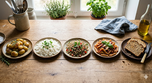 Les féculents sont importants pour l’énergie, mais il faut les alterner entre déjeuner et dîner pour optimiser la perte…