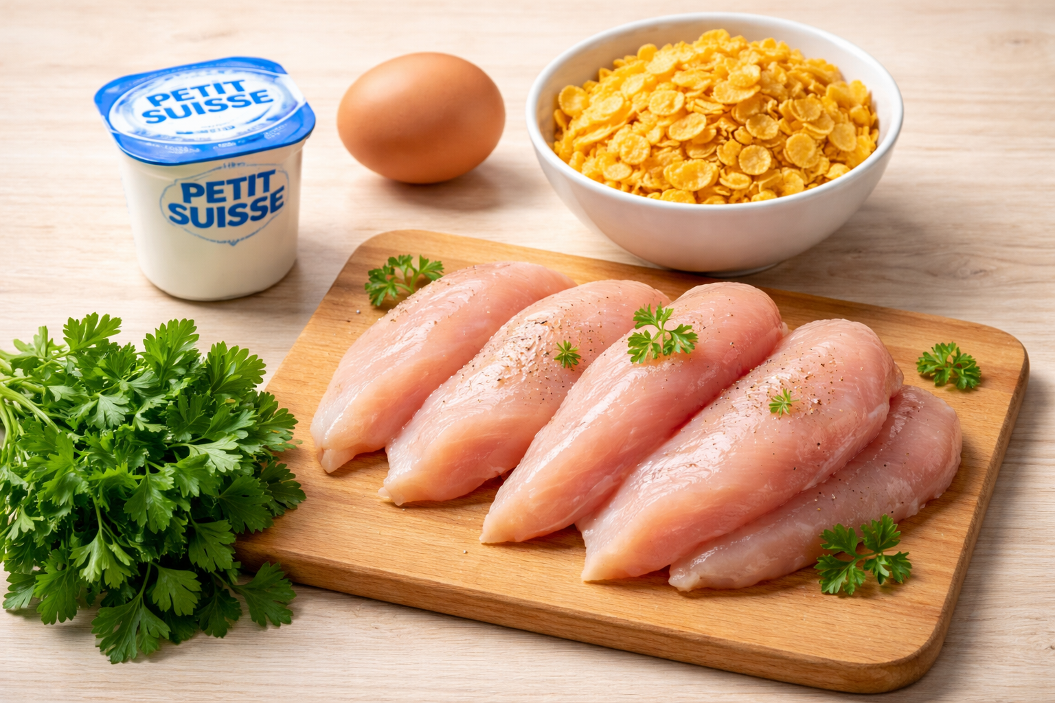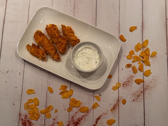Sortez les filets marinés et passez-les successivement dans la farine, puis dans l’œuf battu, et dans les corn flakes (bien pressez pour que la panure adhère).