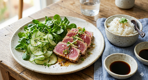 Découvrez ma version light du tataki japonais traditionnel : -40% calories (300→180 kcal) sans sacrifier saveurs ni protéines (25g/pers.). Parfait pour Mon Régime Secret et déficit calorique contrôlé.